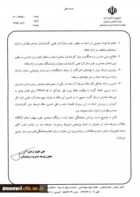 امور دانشجویی سیده خدیجه موسوی 44262266-011 داخلی 113